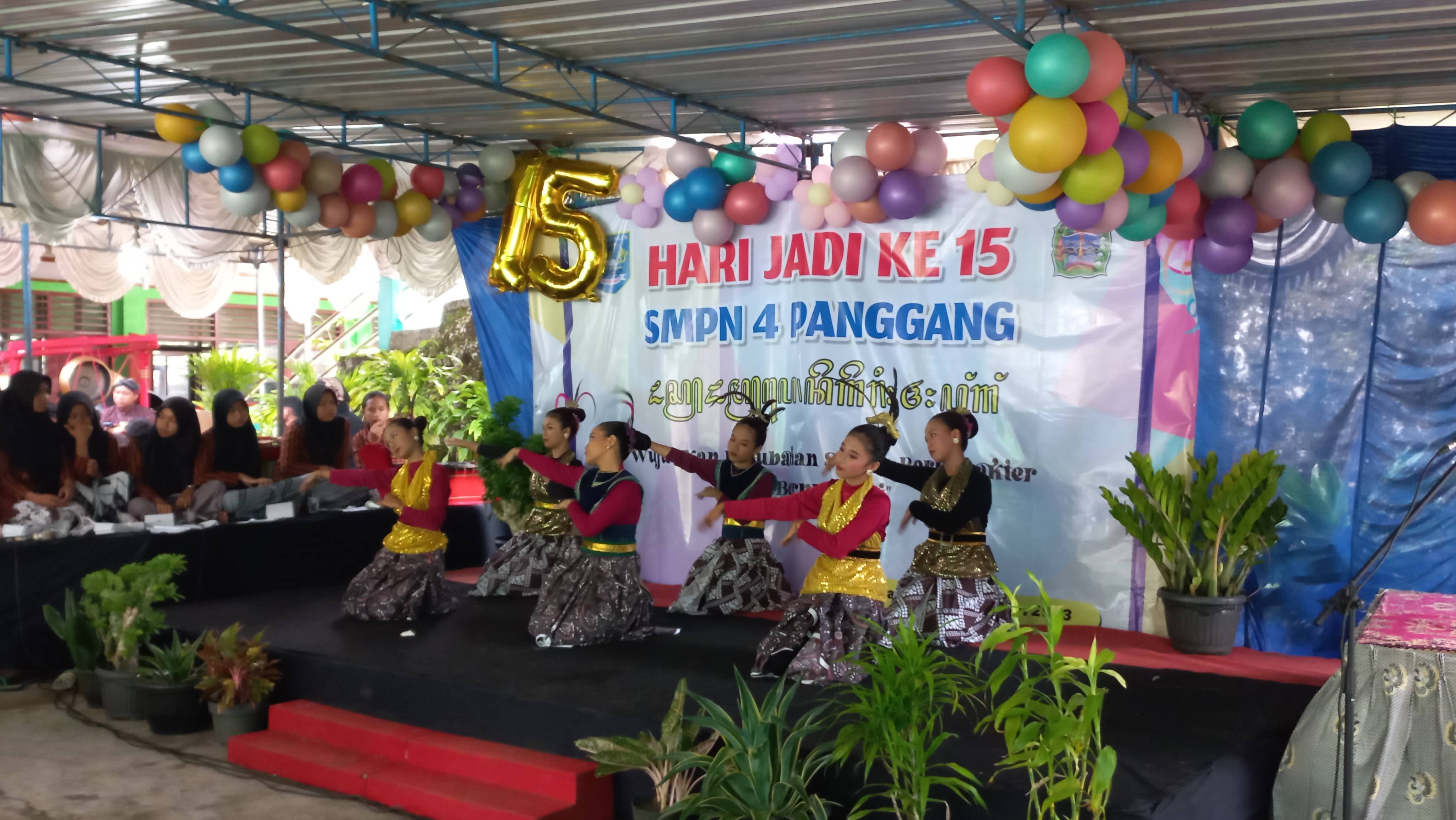 Panggang. Peringatan HUT SMPN 4 Panggang dilaksanakan dengan berbagai kegiatan antara lain : senam masal, market day, pentas seni, fashion show sekolah SD dan SMP, Panewu Kapanewon Panggang, Kepala Dinas Pendidikan Gunungkidul dan berbagai stock holder lain. Kegiatan berjalan lancar diakhiri dengan lounching grup karawitan siswa "Laras Catur Padnya".